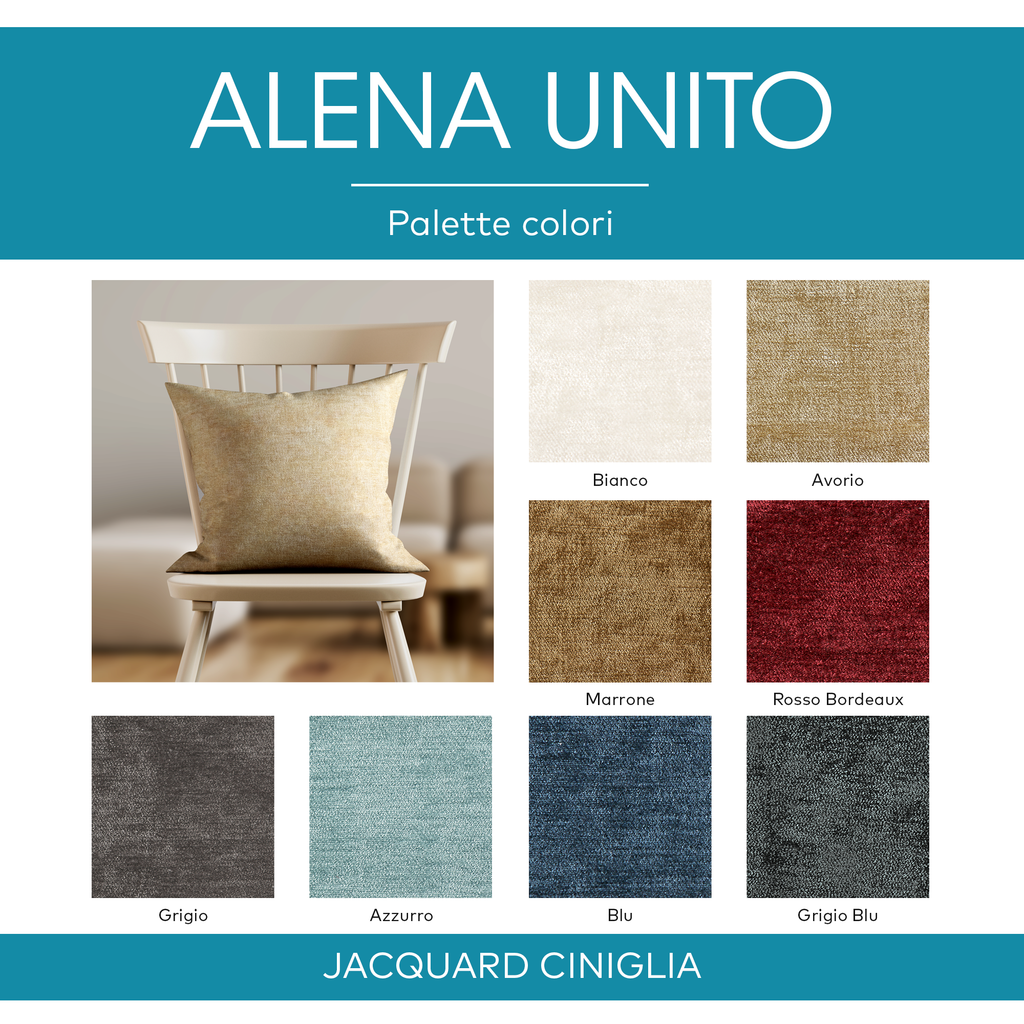 - Molto robusto e resistente all'usura, Alena è disponibile in 8 varianti di colore che si adattano ad ogni tipo di ambiente: può essere impiegato per rivestire mobili imbottiti come divani moderni o classici, testate dei letti, poltrone, sedie, cuscini e complementi d'arredo in genere.
