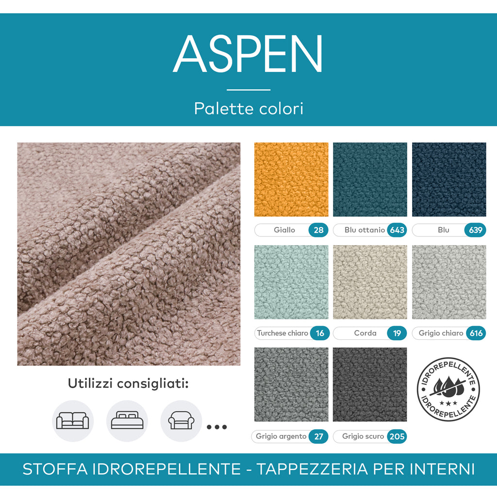 Aspen può essere impiegato per rivestire mobili imbottiti come divani moderni o classici, testate dei letti, poltrone, sedie, cuscini e complementi d'arredo in genere.