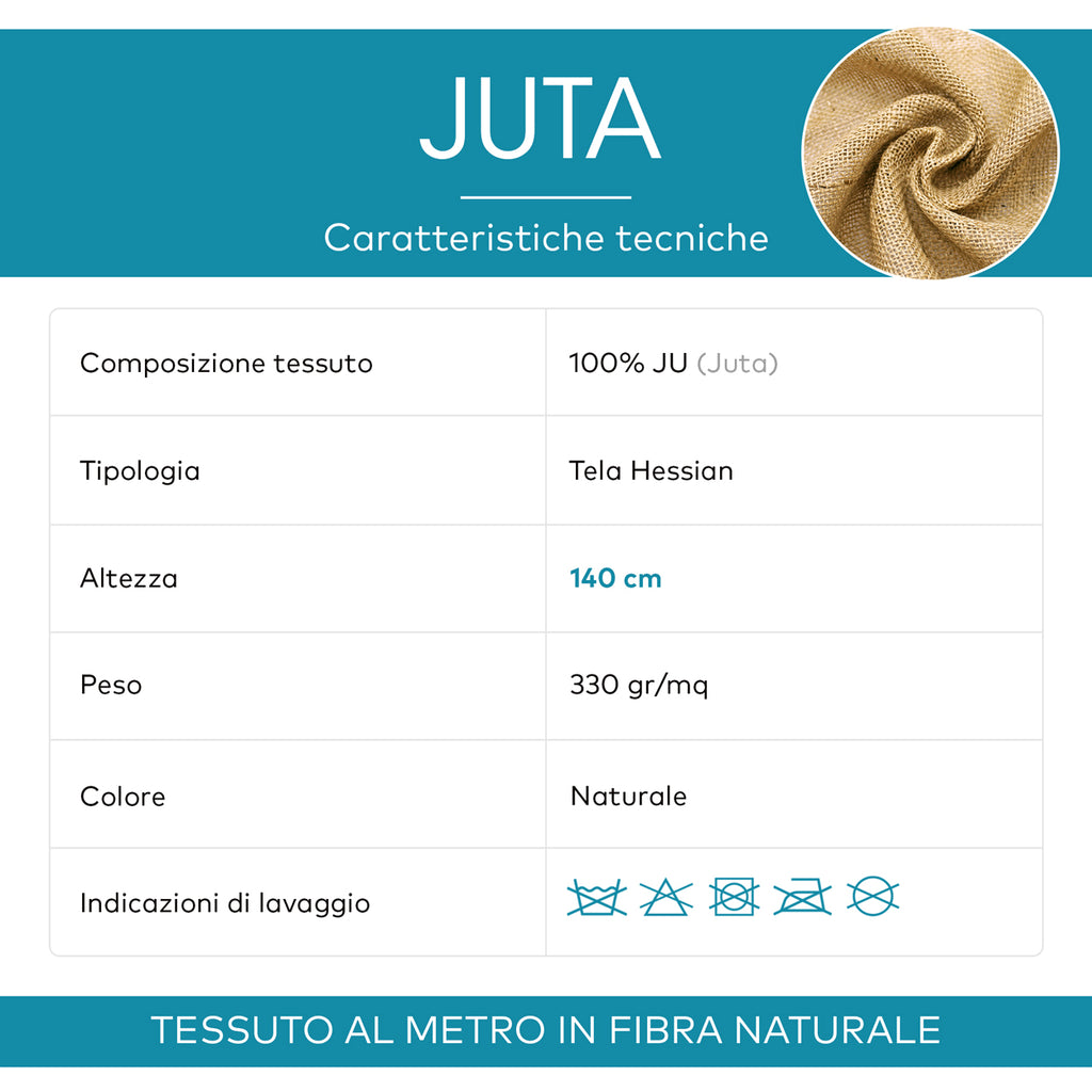 - Caratteristiche tecniche: Juta è 100% naturale, riciclabile e biodegradabile! La maglia larga in tela Hessian dal peso di 330gr la rende estremamente resistente e durevole nel tempo