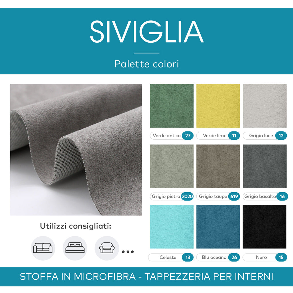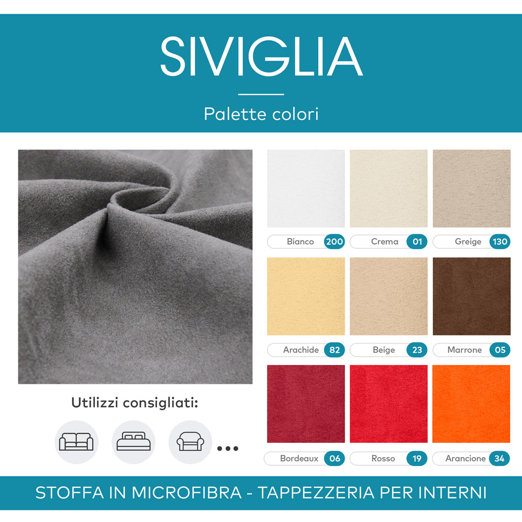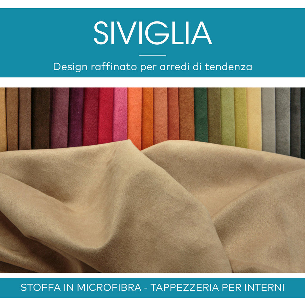 Siviglia è un tessuto al metro in morbida microfibra dal tipico effetto scamosciato, morbido e vellutato al tatto grazie alla superficie dal tipico effetto vellutato "manopesca". E' molto resistente e progettato per durare a lungo nel tempo; bello da vedere, donerà un tocco raffinato ai tuoi ambienti esaltando con semplicità tutta la bellezza delle tue creazioni