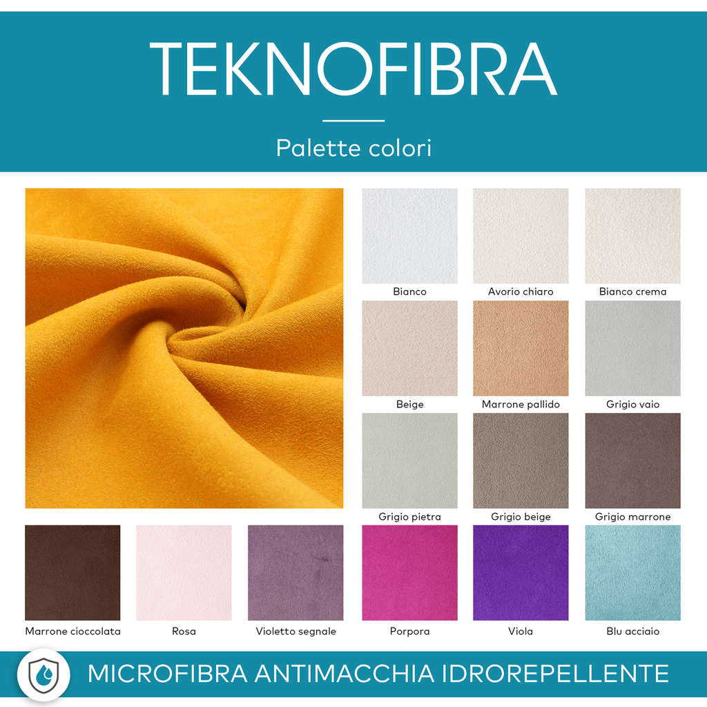 Teknofibra è un tessuto al metro idrorepellente in morbida microfibra accoppiata dal tipico effetto scamosciato "manopesca" sul quale è applicato un innovativo trattamento antimacchia che rende semplicissima la rimozione di ogni macchia. Teknofibra è estremamente resistente e progettato per durare a lungo nel tempo!